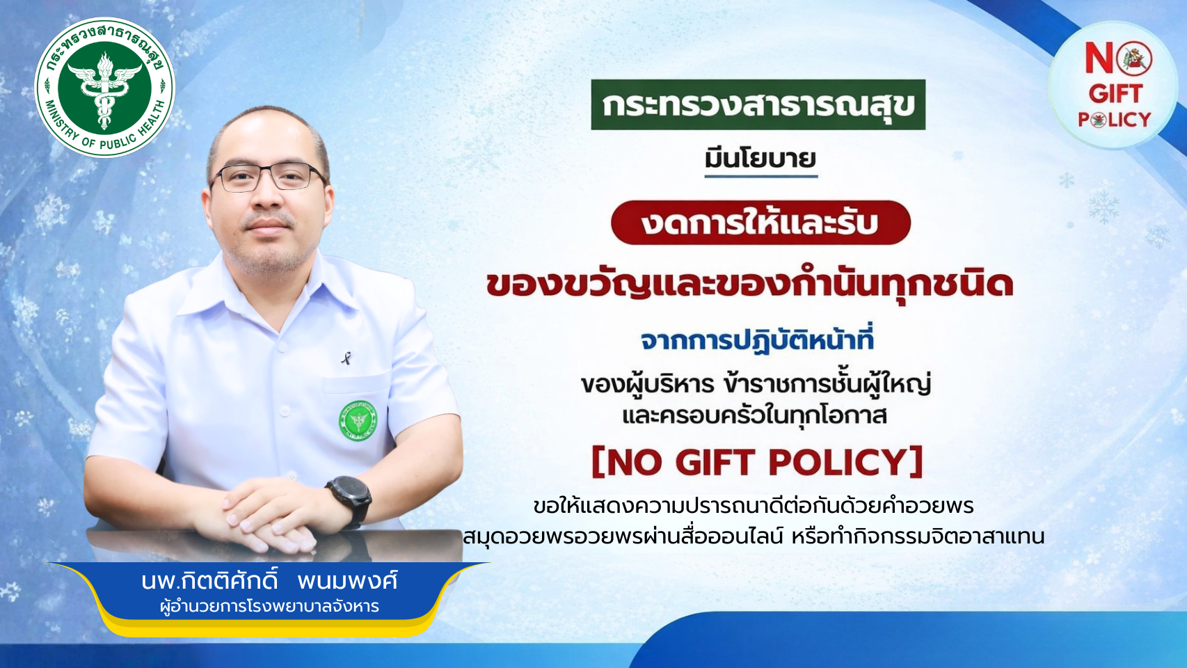 นโยบายการไม่รับของขวัญและของกำนัลจากการปฏิบัติหน้าที่ หนังสือแจ้งการประมวลผลข้อมูลส่วนบุคคล ประกาศการเข้ารับบริการโรงพยาบาลจังหาร โรงพยาบาลจังหารให้บริการเป็นมิตรสำหรับเยาวชน